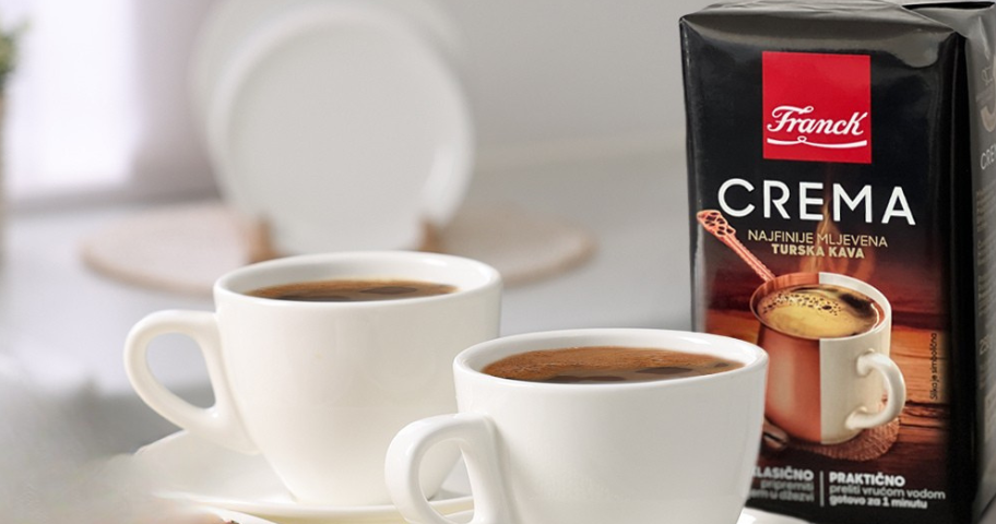Zahvaljujući posebnom načinu mljevenja, Franck Crema kava omogućuje brzu pripremu jednostavnim prelijevanjem vrućom vodom, ali i klasičnu pripremu u džezvi. Bez obzira na način, ono što ostaje isto jest bogata pjena i kremaste note čokolade i kakaovca, prirodno prisutne u pažljivo biranim zrnima.